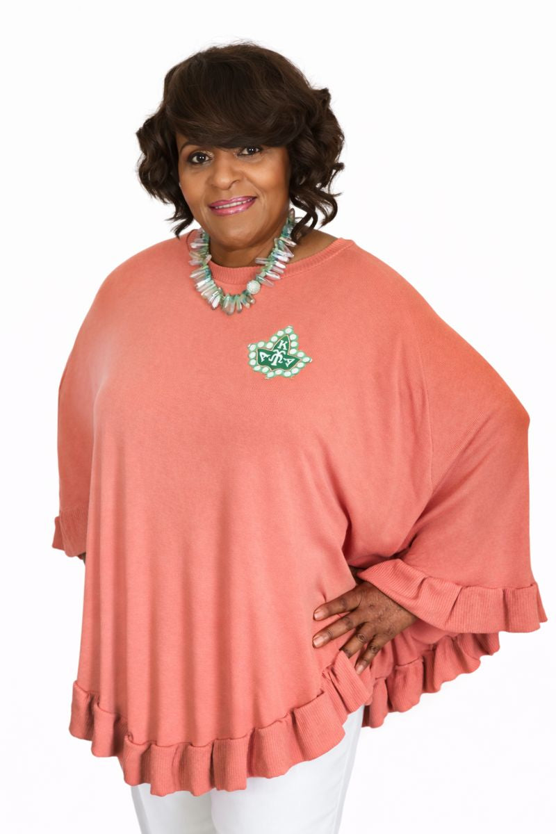 PRETTY RUFFLE HEM PONCHO SWEATER