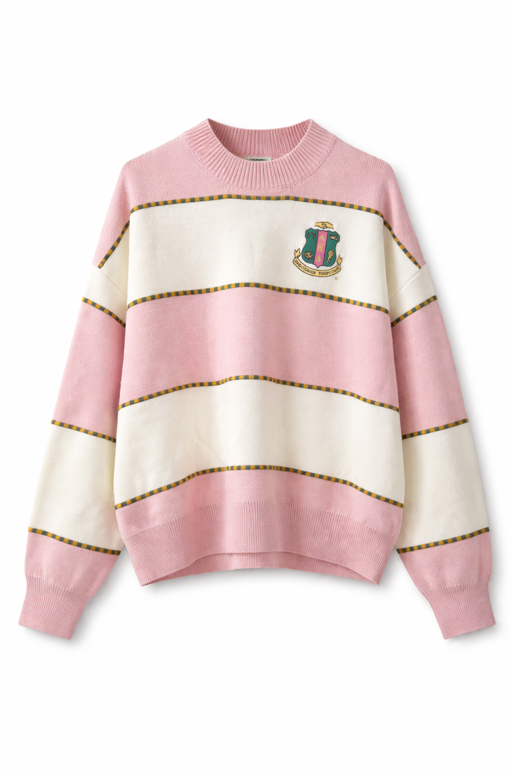 + Crew neck and long sleeves + Waist-length style + Stripe pattern